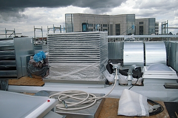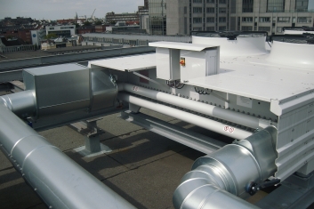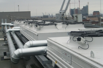 Zentrale Kälteanlage, Mittelspannungsstation mit Trafo, Twister-Notstromversorgung, Treppenhaus-Druckbelüftung, Feuerwehraufzug, Rechenzentrum, Kühldecken |