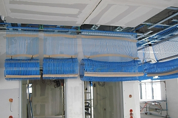 Neubau eines freistehenden 10-geschossigen Bürogebäudes. In den Mietbereichen wurden Kapillarrohrmatten mit Putzträgermatten im Maschinenputz an der Decke angebracht. Redundante Kälteversorgung für das Rechenzentrum. |